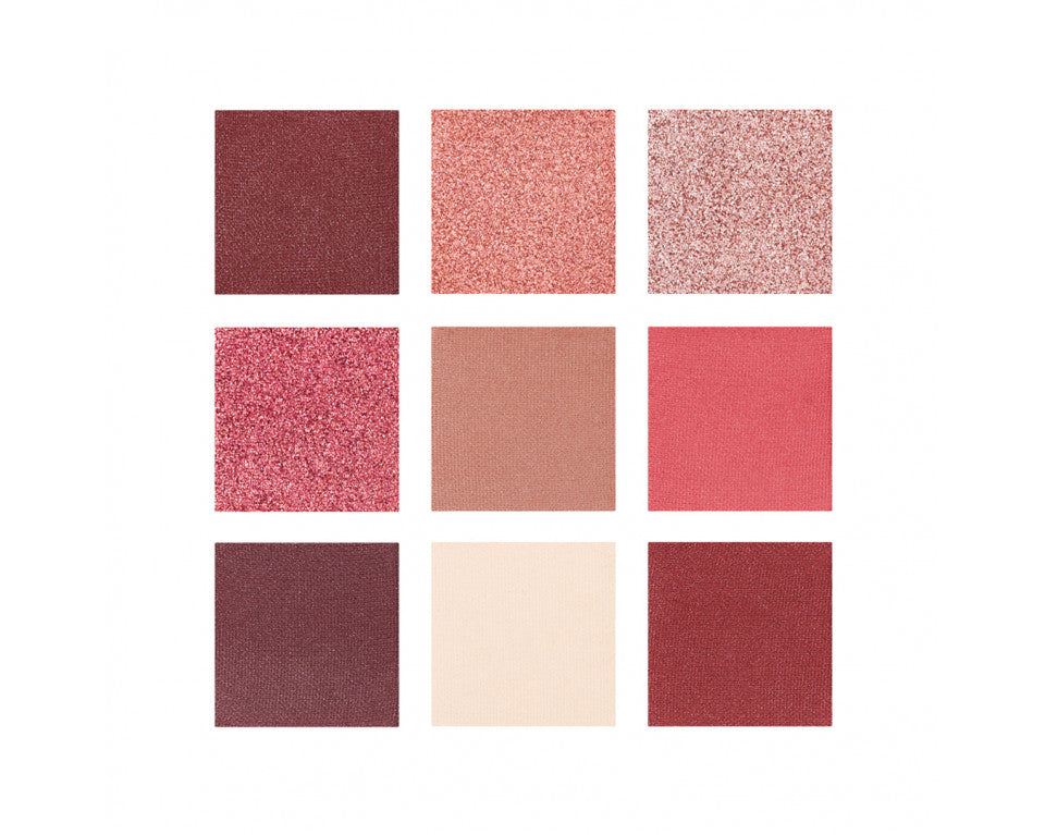 Μια χρηστική παλέτα 9 σκιών, τέλεια εναρμονισμένων χρωματικά! Τα ομορφότερα μπορντώ,δαμασκηνί, μοβ και βυσσινί είναι μόνο μερικά από τα φανταστικά χρώματα της παλέτας! Διαθέτει ματ και λαμπερές σκιες σε διαφορετικές υφές για ποικίλες εμφανίσεις. Μπορεί να χρησιμοποιηθεί για ένα διακριτικό μακιγιάζ κατά τη διάρκεια της ημέρας αλλά και για το απόλυτο party look!