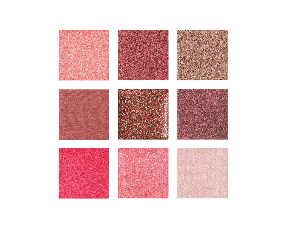 Μια χρηστική παλέτα 9 σκιών, τέλεια εναρμονισμένων χρωματικά! Τα ομορφότερα ροζ, μπορντώ και σάπιο μήλο είναι μόνο μερικά από τα φανταστικά χρώματα της παλέτας! Διαθέτει ματ και λαμπερές σκιες σε διαφορετικές υφές για ποικίλες εμφανίσεις. Μπορεί να χρησιμοποιηθεί για ένα διακριτικό μακιγιάζ κατά τη διάρκεια της ημέρας αλλά και για το απόλυτο party look!