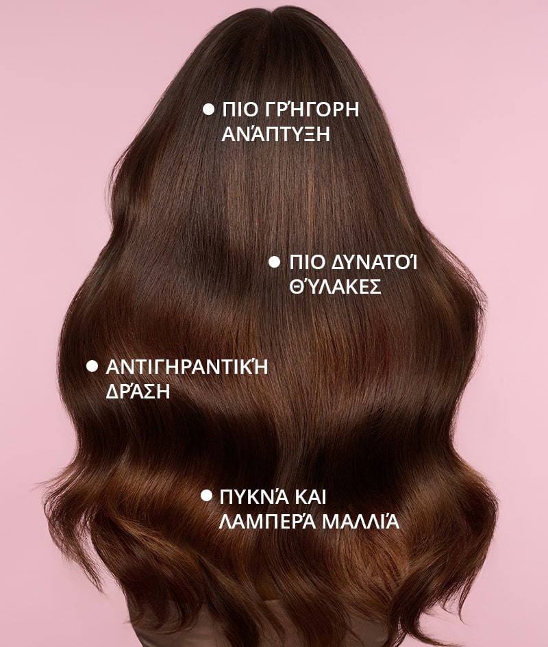 - Μεταμορφώνει τα λεπτά, άτονα μαλλιά και ενισχύει τους θύλακες