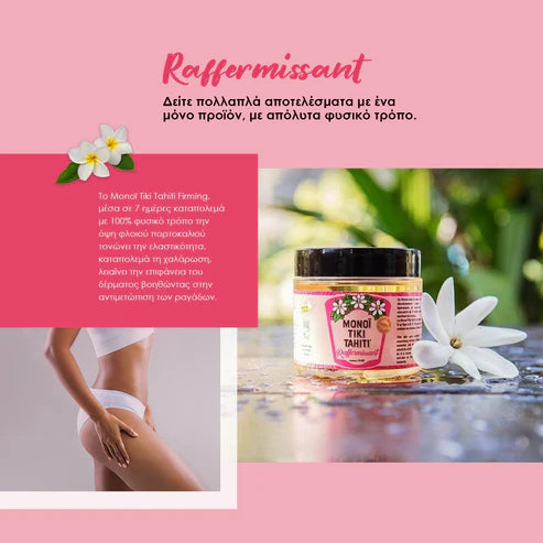 Το Monoi Tiki Tahiti Reaffirmante είναι μια ολοκληρωμένη θεραπεία με θρεπτικά συστατικά και εξαιρετική απαλότητα που καταπολεμά τη χαλάρωση και την όψη φλοιού πορτοκαλιού, ενυδατώνοντας βαθιά το δέρμα και αυξάνοντας την ελαστικότητά του.