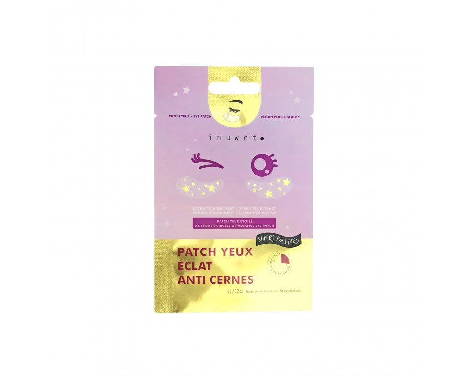 Είστε κουρασμένη? Υποφέρετε από «έντονους» μαύρους κύκλους και σακούλες κάτω από τα μάτια? Όχι πλέον! Eφαρμόστε τα νέα patches ματιών της Inuwet με super δυνάμεις υαλουρονικού και εκχύλισμα πράσινου τσαγιού. Τα eye patches glitter stars μειώνουν τους μαύρους κύκλους τονώνοντας την μικρο -κυκλοφορία του αίματος γύρω από τα μάτια, βοηθώντας στην μείωση λεπτών γραμμών και ενισχύοντας την ελαστικότητα της λεπτής επιδερμίδας. Μέσα σε λίγα λεπτά το λεπτό δέρμα τονώνεται και γίνετε λείο.